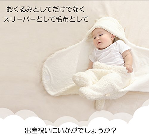 Mille Ti Rana 新生児 赤ちゃん おくるみ 出産祝い お出かけ 寝かしつけ ボア スリーパー ギフトバッグ (白)