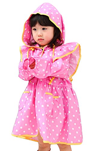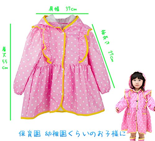 Mille Ti Rana キッズ レインコート フリル 水玉 レインウェア 女の子 カッパ 雨具 収納袋付 (ピンク)