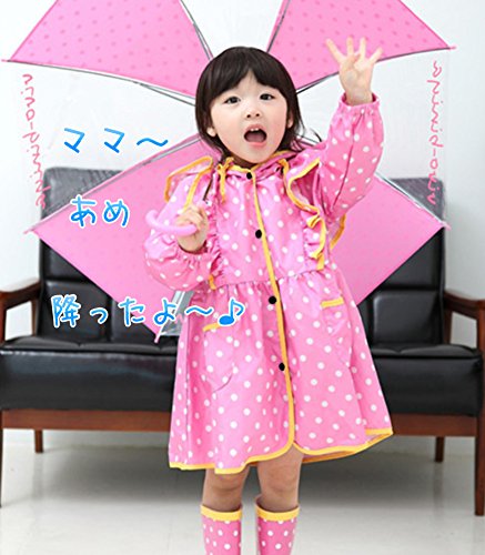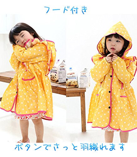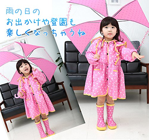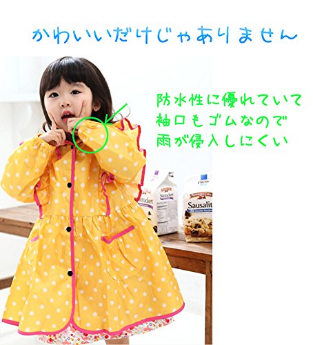 - 「ねーねーママ、雨降ったよ。お出かけしよーよ」って声が聞こえてきそうなほど、かわいいデザイン。ピンクorイエローの水玉&フリルがかわいいおしゃれなレインコート。