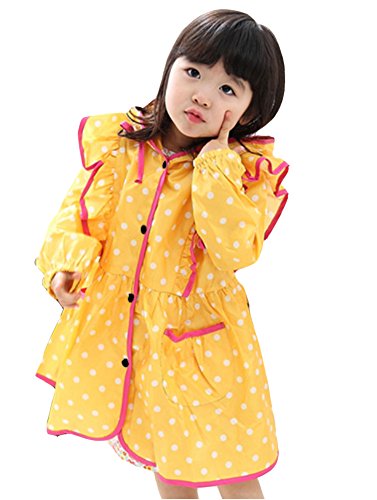 Mille Ti Rana キッズ レインコート フリル 水玉 レインウェア 女の子 カッパ 雨具 収納袋付 (イエロー)
