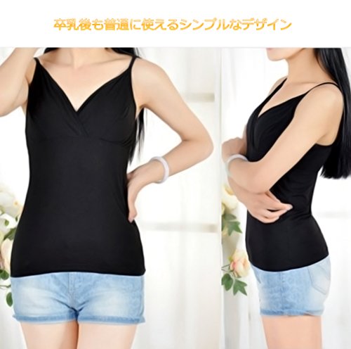 Mille Ti Rana マタニティ キャミソール クロスオープン ブラトップ 授乳 インナー (L-LL, ブラック)