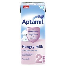 水のいらない調整済み液体ベビーミルク、200ml入り。Aptamilはベビーミルクメーカーとして50年以上の歴史を持つスイスのメーカーでダノングループです。可能な限り母乳に近づけたフォーミュラが特徴です。本商品はロングライフ牛乳と同じUHT(超高温滅菌)処理がされています。