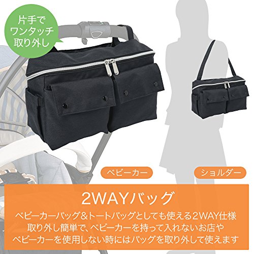 - 【2WAYバッグ】ベビーカーバッグとしてもトートバッグとしても使える2WAY仕様。ベビーカーから片手でワンタッチ取り外しができるので、ベビーカーを持って入れないお店やベビーカーを使用しない時などにはバッグを取り外してトートバッグとしてお使いいただけます。