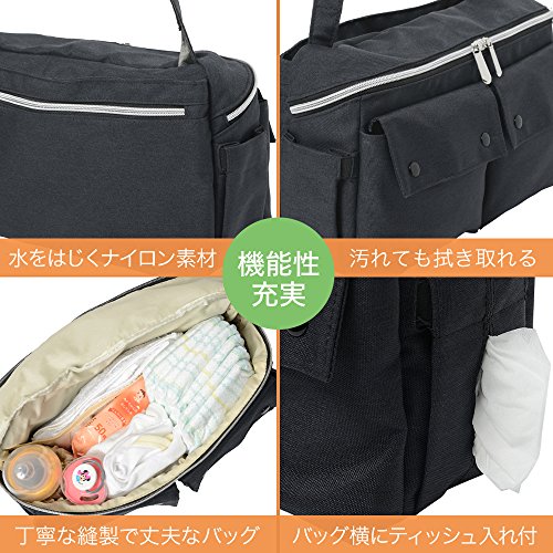 - 【スタイリッシュデザイン】シンプルでスタイリッシュなデザインで、普段使いがしやすいバッグです。シンプルなのでベビーカーにマッチしやすく使い勝手が抜群。ママのためのコーヒー入れも付いていて、両手が塞がったときにもお役立ちのバッグです。