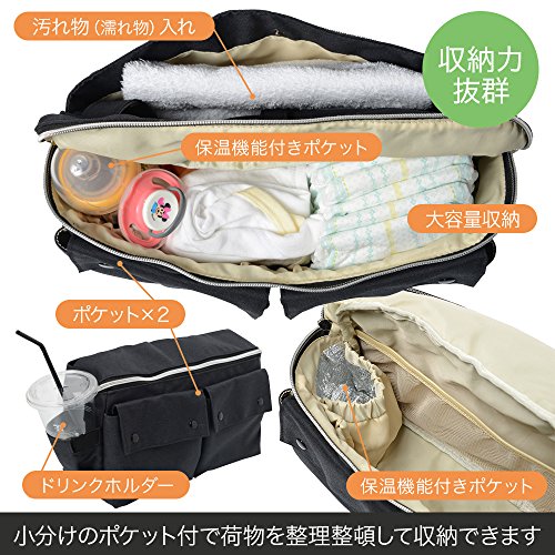 - 【収納力抜群】大容量で収納力抜群。小分けのポケットがたくさん付いているので荷物を整理整頓し、分けて収納することができます。保温機能付きポケットもあるので、哺乳瓶の持ち運びにも便利。お子様の必需品をすべてこのバッグに入れてお出かけすることができます。
