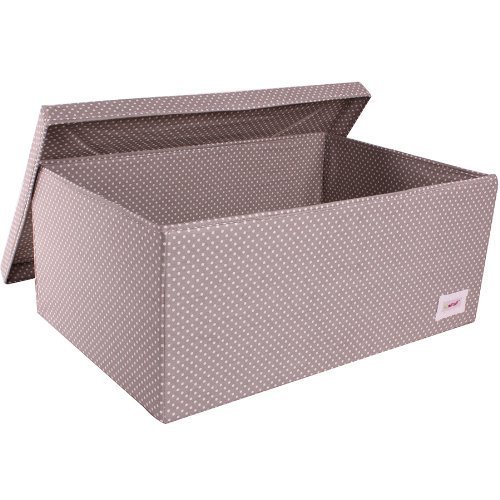 - Minene Large Storage Box with Lid Grey with White Dots - storage box, large fabric storage box - great for toy storage, kids storage