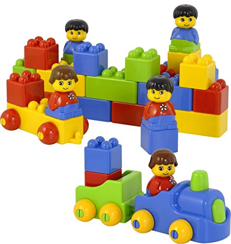 High quality blocks provides basic construction knowledge to enhance emerging skills. The set includes characters and pieces with ready-assembled wheels. The activities in the teaching guide promote the developmental skills of problem-solving and spatial relations.