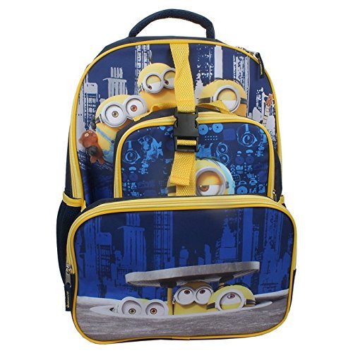 The Despicable Me 16" Backpack in Blue with Lunch Pack is going to make your little ones go wild with desire. Imagine how excited they'll be taking a little piece of their favorite movie, Despicable Me, along wherever they go with this exciting backpack. You'll love the durable construction with enough space for favorite toys, books and even overnight supplies for a visit with friends or family. They'll be the envy of the playground with this Despicable Me backpack. Dual Compartment Backpack. 16" x 12' x 3". Fully Insulated 9" Lunch Box.