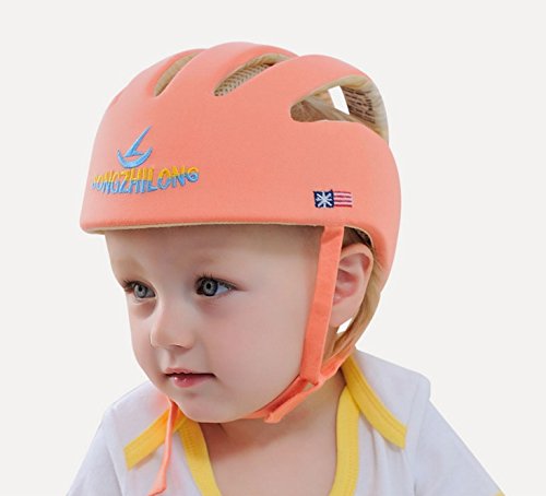 Minsell 安全ヘルメット ベビー 乳幼児 ソフト 可愛い 洗える スポンジ 安全 ヘッドガード プロテクター 保護 ケガ 防止 軽量 サイズ調整可 (オレンジ)