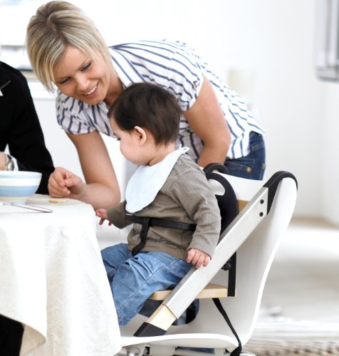 ご家庭のダイニングチェアにそのまま装着できるので、ベビーもご家族と一緒の食卓を囲んで団欒を楽しむことができます。