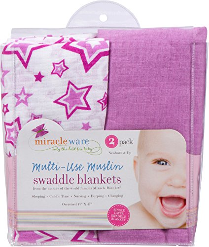 miracle ware ミラクルウエア Muslin Swaddle Blanket 2pk モスリンブランケット2枚セットRadiant Orchid パープルスター