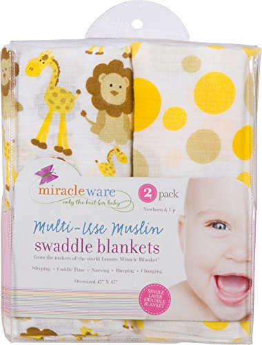 miracle ware ミラクルウエア Muslin Swaddle Blanket 2pk モスリンブランケット2枚セットGiraffes & Lions ジラフ&ライオン