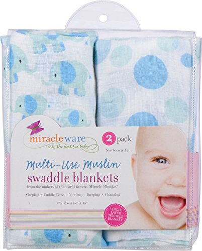 miracle ware ミラクルウエア Muslin Swaddle Blanket 2pk モスリンブランケット2枚セットElephant ブルーエレファント