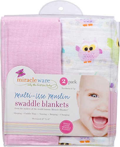miracle ware ミラクルウエア Muslin Swaddle Blanket 2pk モスリンブランケット2枚セットOwls オウル
