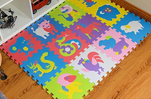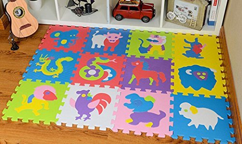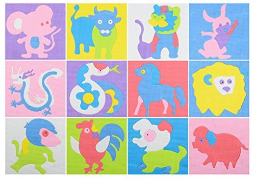 Misaky Kids Puzzle Chinese elements, animal , 12 Tiles and Edges Play Mat, 30cm30cm [並行輸入品]
