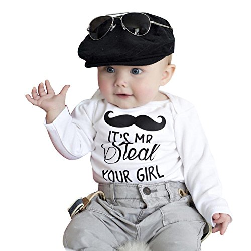 misaky Kid Boyプリント長袖ロンパースボディースーツベストTシャツ 70cm(Age:6M) ホワイト Misaky