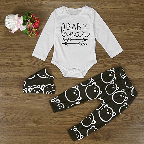 misaky 1setベビー女の子男の子トップスロンパース+ロングパンツ帽子3点服装 70CM(Age:3M) ホワイト Misaky