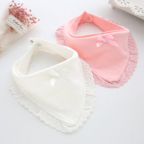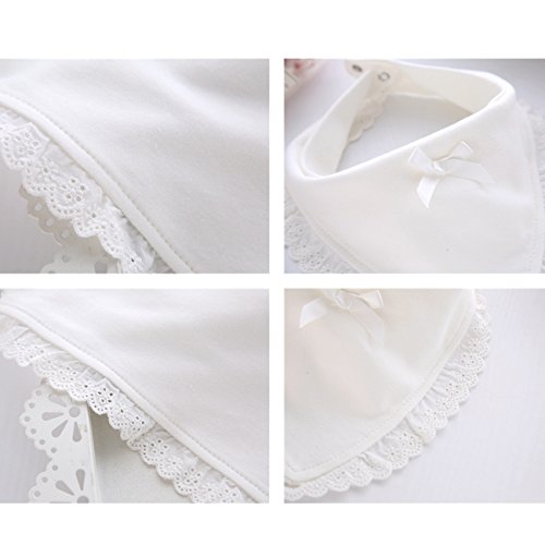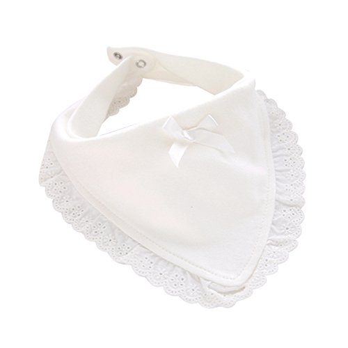 スタイ ビブ ベビー バンダナ フリル 柔らかい おしゃれ スナップ よだれかけ 女の子 出産祝い 贈り物 結婚式 (三角, ホワイト)