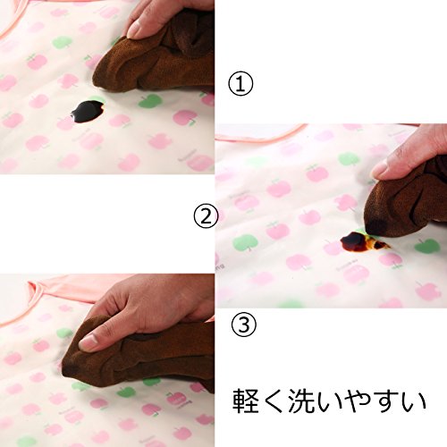 前面は撥水仕様で、濡れても中に着ているお洋服が濡れません。忙しいママにもお手入れカンタン。離乳食や、コップ、ストローで飲む練習に最適です。