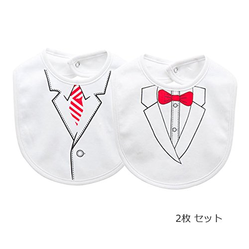 スタイ ビブ ベビー バンダナ フォーマル プリント 柔らかい おしゃれ スナップ よだれかけ 男の子 女の子 出産祝い 贈り物 結婚式 2枚セット (男の赤ちゃん)