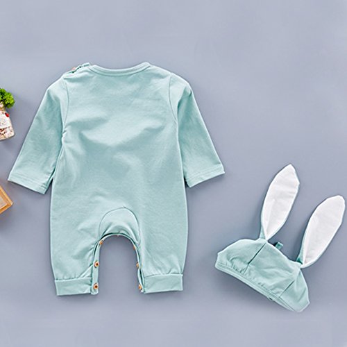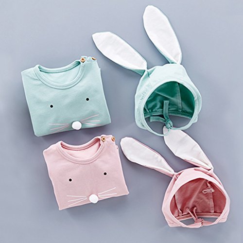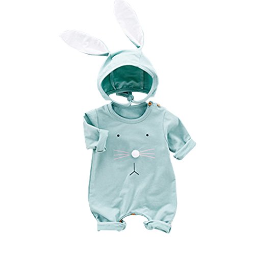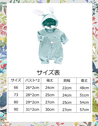 ベビー ロンパース かわいい ウサギ 2点セット カバーオール 長袖 赤ちゃん服 幼児 子供服 男の子 女の子 フード付属 満月 出産祝い プレゼント (グリーン, 66)
