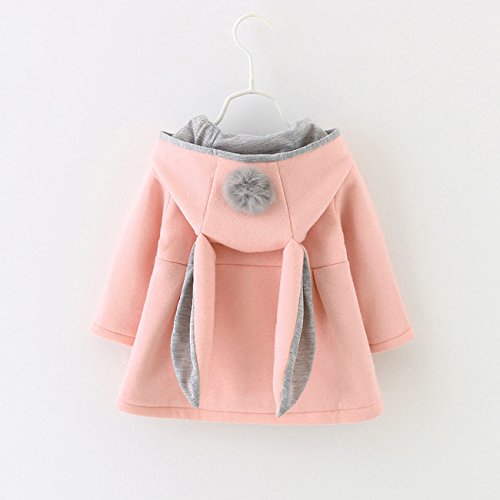 キッズ コート アウター ジャケット ガールズ かわいい 子供服 コート フード付き ウサギの耳 ベビー服 女の子 長袖 秋 冬 カジュアル ファッション 保育園 (80, ピンク)