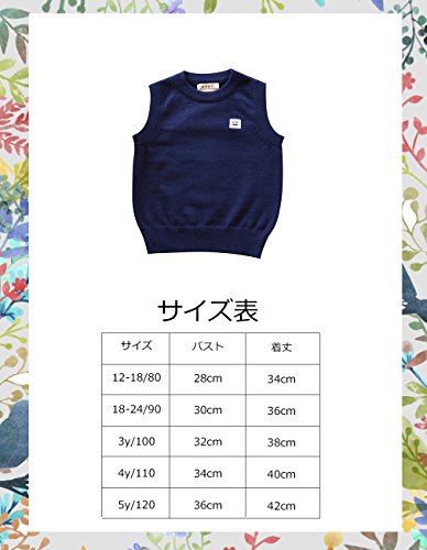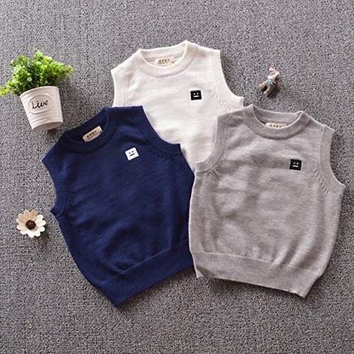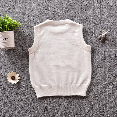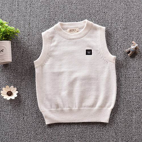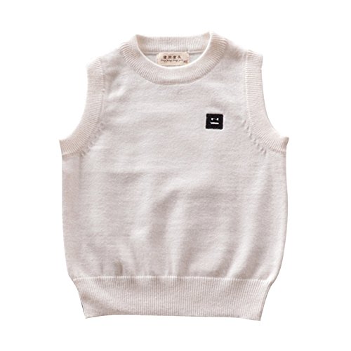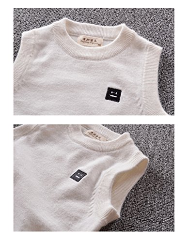 子供 ベスト クルーネック 袖なし キッズ ニット セーター シンプル スクール 男の子 女の子 秋 冬 (90cm, ホワイト)