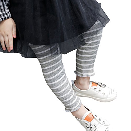ガールズ レギンス ストライプ キッズ スパッツ 秋冬 かわいい 子供用 普段着 (130cm, グレー)