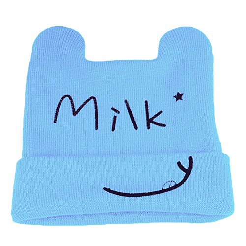 (ミス ユー)Miss You  ベビーニット帽子 ベビーハット ニット帽子 赤ちゃん冬帽子 編み帽 キャンプ 耳付 子供防寒 (ブルー)