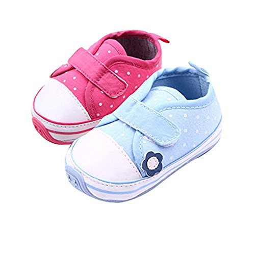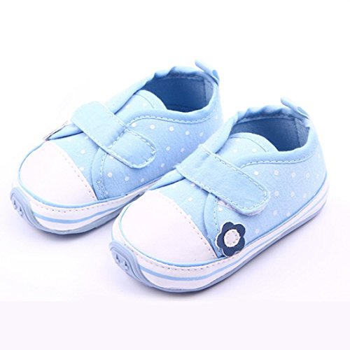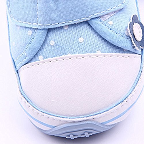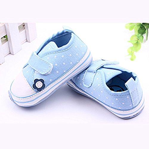 MissとMr ベビーシューズ ファーストシューズ 水玉柄 柔らかい靴底 滑り止め 小花飾りルームシューズ 子供用 歩行練習 スニーカー 出産お祝い プレゼント (11cm, ブルー)