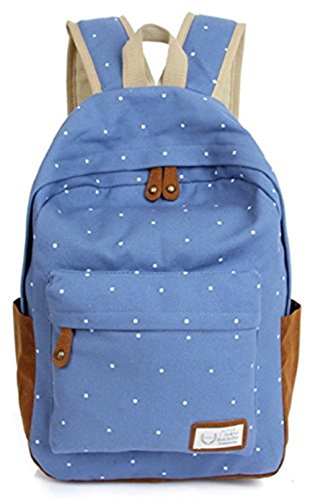 MissとMr リュックサック リュックドット柄 水玉 帆布バッグ リュックサック アウトドア キャンバス バックパック 小学生 中学生 高校生 大学生 メンズ レディース シンプル 軽量 アウトドア スポーツ バックパック (ブルー)