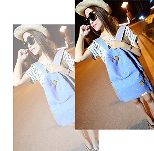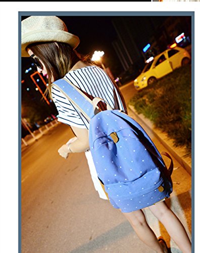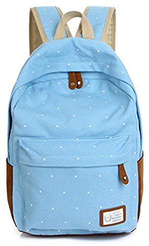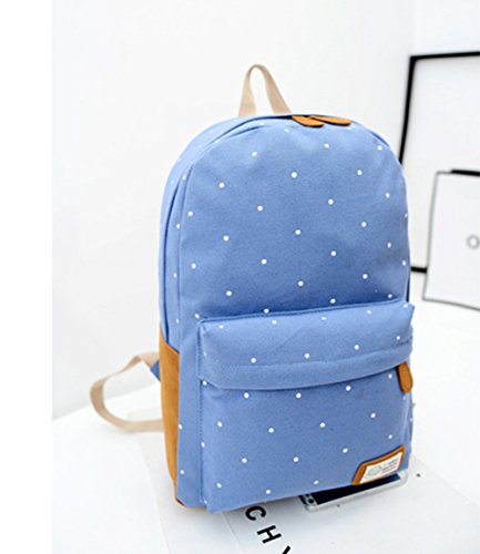 MissとMr リュックサック リュックドット柄 水玉 帆布バッグ リュックサック アウトドア キャンバス バックパック 小学生 中学生 高校生 大学生 メンズ レディース シンプル 軽量 アウトドア スポーツ バックパック (ライトブルー)