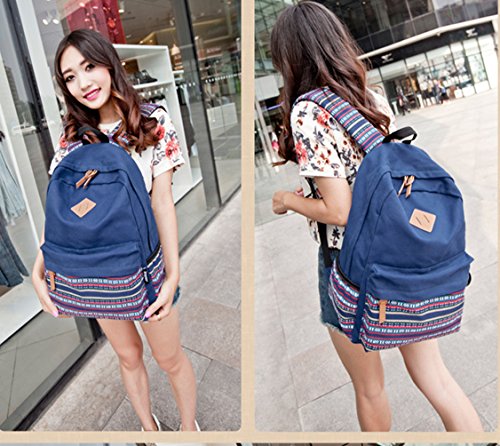 MissとMr 帆布リュック キャンバス デイパック リュック メンズ レディース通学 アウトドア 男女兼用 通学 通勤 遠足 旅行 花見 (ネイビー)