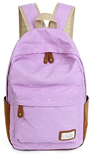 MissとMr リュックサック リュックドット柄 水玉 帆布バッグ リュックサック アウトドア キャンバス バックパック 小学生 中学生 高校生 大学生 メンズ レディース シンプル 軽量 アウトドア スポーツ バックパック (ライトパープル)