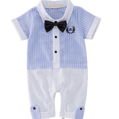 MissとMr ベビー服 ベビー フォーマル カバーオール 赤ちゃん セレモニー ロンパース 男の子 タキシード スーツ風 半袖 ボーイズロンパース 蝶結び 紳士風洋服 結婚式 七五三 記念日 (90cm)