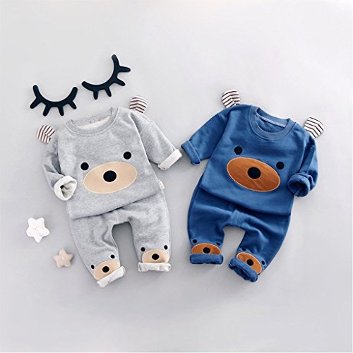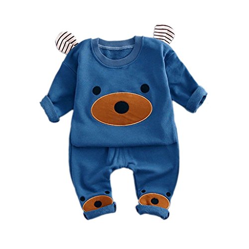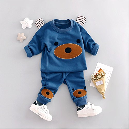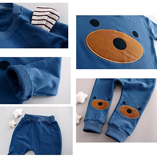 MissとMr ベビー服 男の子 パジャマ 子どもルームウェア 上下 セット 女の子 カートゥーン 丸首 長ズボン 長袖 春秋 出産お祝い プレゼント (80, ダーグブルー)