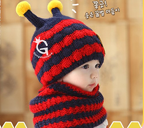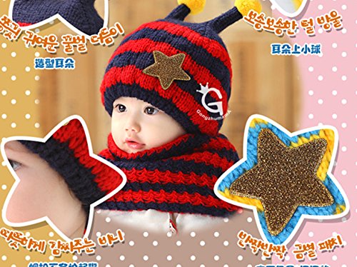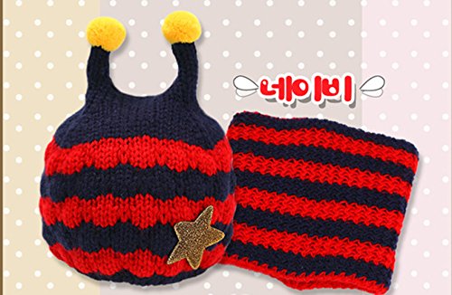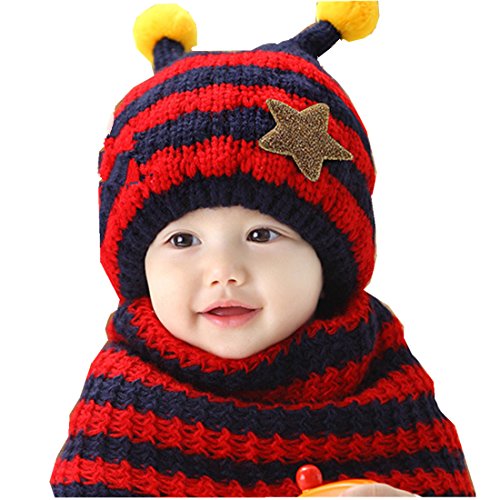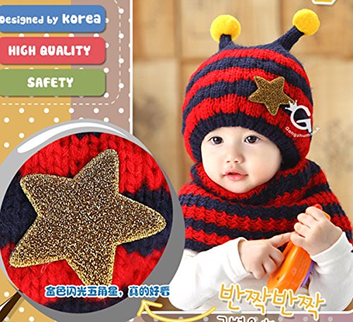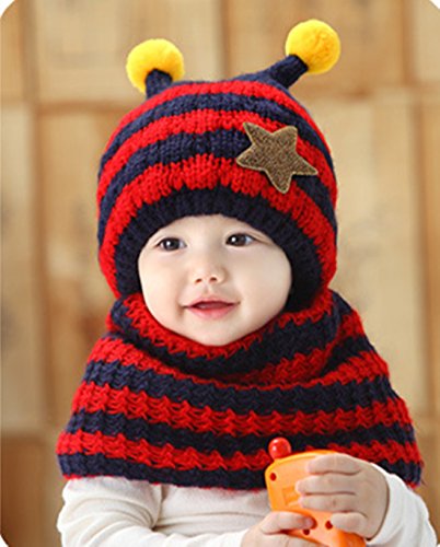 MissとMr 赤ずきんちゃん風 ニット帽 ネックウォーマー セットマフラー ケープ スヌード ニット帽子ニットキャップ キッズ ベビーかわいい 秋 冬 子ども 男の子 女の子 男女兼用 幼児 Kids 防寒 (レッド)