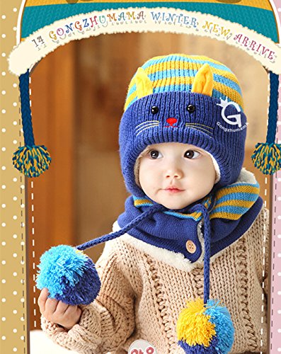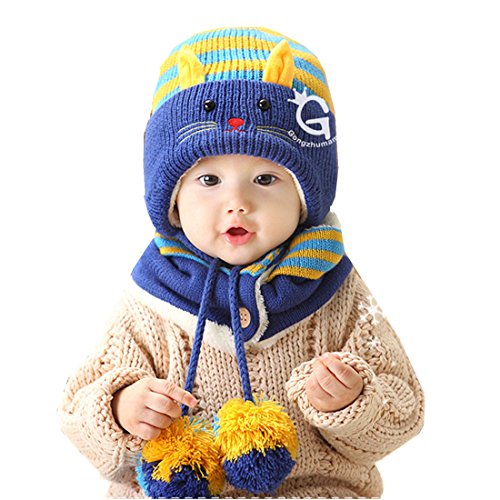 MissとMr ニット帽 ネックウォーマー セットマフラー ケープ スヌード ニット帽子ニットキャップ キッズ ベビーかわいい 秋 冬防寒ふわふわ 防寒 プレゼント ハロウィン コスチューム 子ども 男の子 女の子 男女兼用 (ダーグブルー)