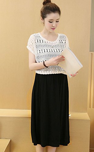 MissとMr 授乳服 マタニティ ワンピース ロングレースTシャツ セット ツーピース ノースリーブ (XXL)