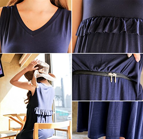 授乳服 ワンピース マタニティウェア ロング丈 授乳口付き フリルマキシワンピ 妊娠服 春 夏 (ネイビー, XL)