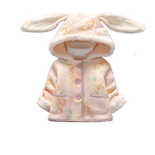MissとMr 子供服 綿服 兎耳フード ベビー キッズ コート ジャケット アウターウェア ベビー キッズ 女の子 冬 防寒 可愛い 入園 通園 クリスマス お正月 ィート付き (100cm, ピンク)