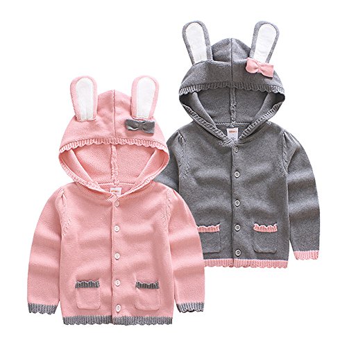 MissとMr ベビー服 女児 女の子 カーディガン 上着 ニット セーター 子供 長袖 ニット ウェア うさぎフード付き 可愛い お出かけ 秋冬 (130cm, ピンク)