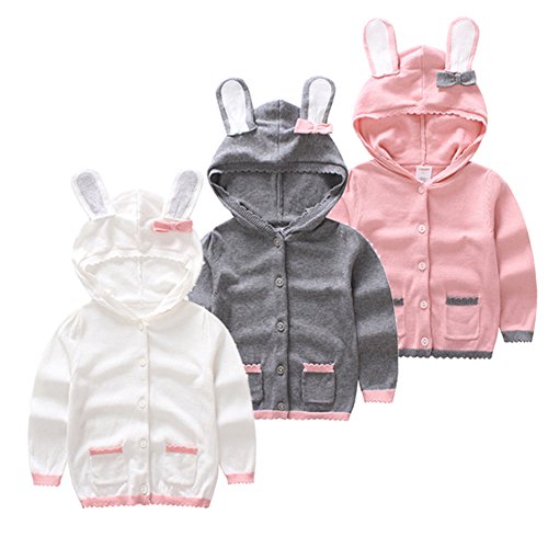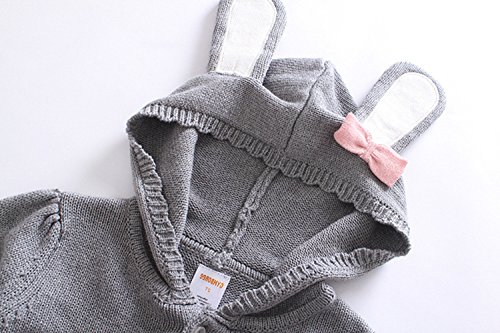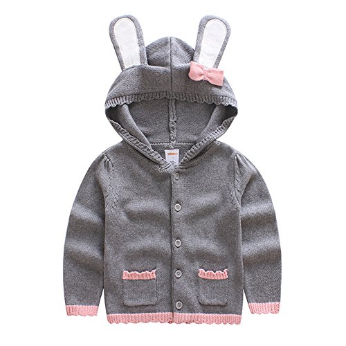 MissとMr ベビー服 女児 女の子 カーディガン 上着 ニット セーター 子供 長袖 ニット ウェア うさぎフード付き 可愛い お出かけ 秋冬 (120cm, グレー)