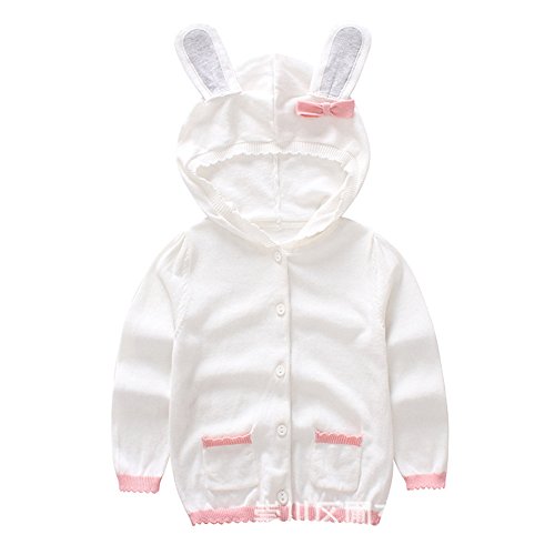 MissとMr ベビー服 女児 女の子 カーディガン 上着 ニット セーター 子供 長袖 ニット ウェア うさぎフード付き 可愛い お出かけ 秋冬 (120cm, ホワイト)