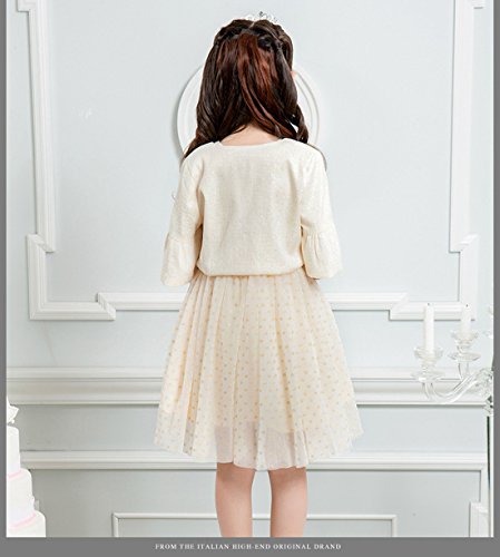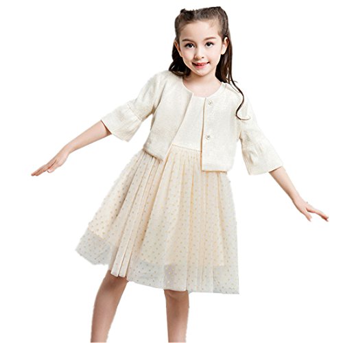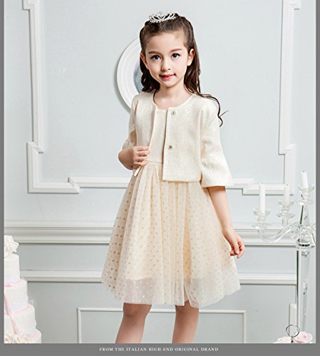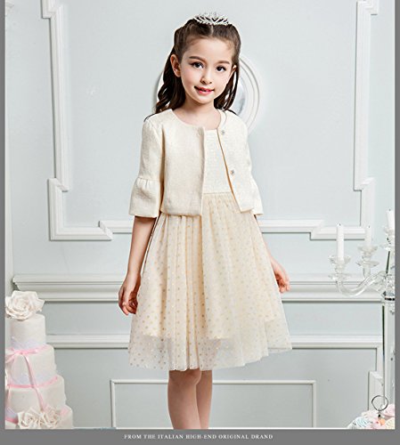 MissとMrキッズ ドレス 子供ワンピース ガールズドレスフォーマル 五分丈ボレロ+ノースリーブ チュール ワンピース 2点セット お姫様ドレス 入学式 卒園式 卒業式 七五三 パーティー卒園式 発表会 結婚式 (120cm, ベージュ)