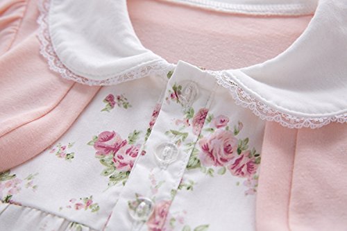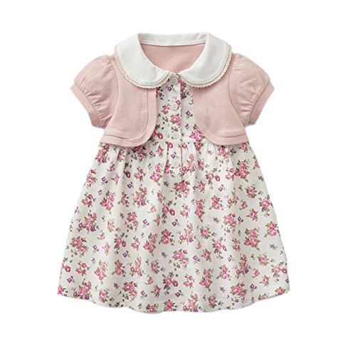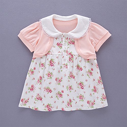 MissとMr ベビー服 ベビードレス ベビーワンピ ベビープリンセスワンピース レースワンピース プリンセス 半袖 花柄 結婚式 七五三 誕生日 撮影 記念日 お祝い (100cm, ピンク)