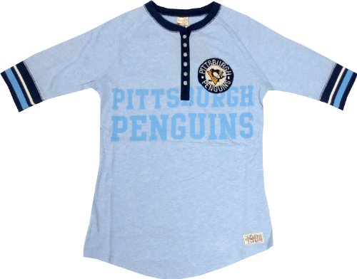 Pittsburgh Penguins Mitchell & NessレディースブルーNeutralゾーンHenley 3 / 4シャツ – Medium