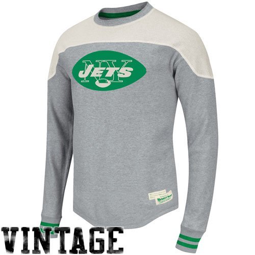 NFL Mitchell & Ness New York Jets Long Sleeve Thermal Tシャツ – Ash – 5 x l