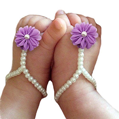 miugleベビーパール裸足サンダル花で、ラベンダー