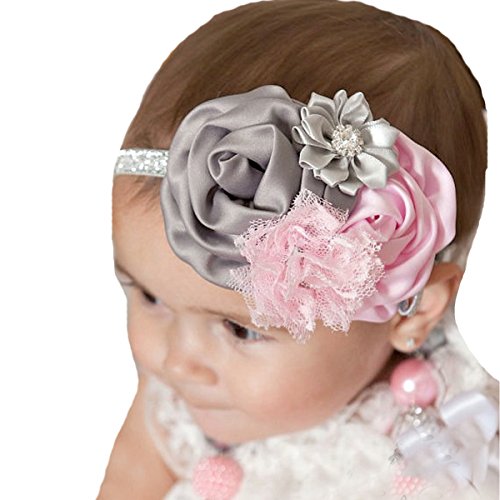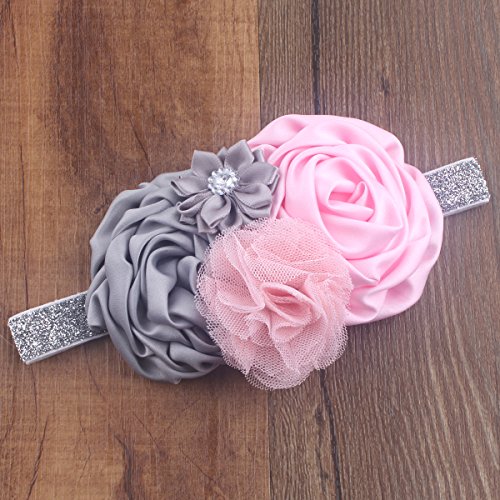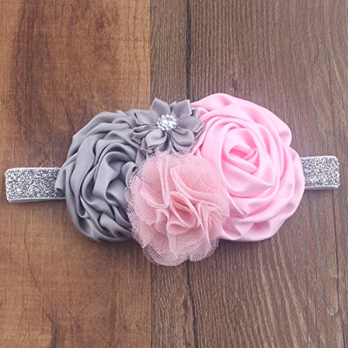 miugle Baby Girl 's Glitter Sliverヘッドバンド花で、14?" Girth